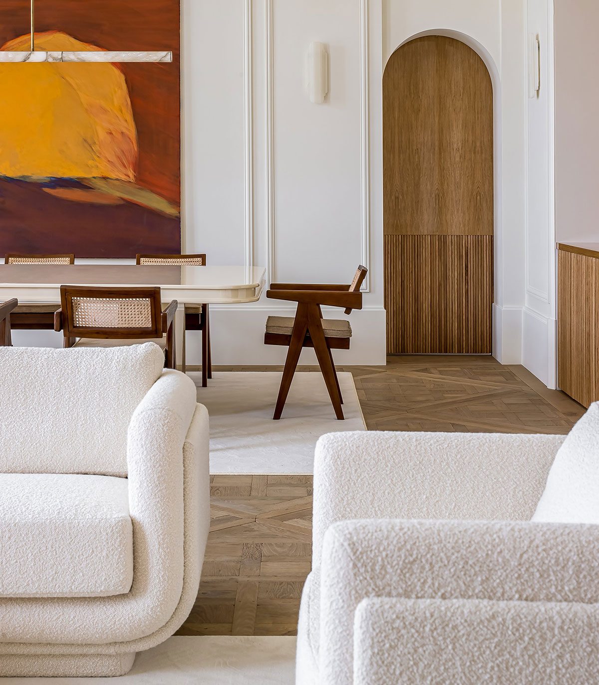 - Акцент на тактильных ощущениях — материалы приглашают "потрогать", создавая ощущение живого пространства.